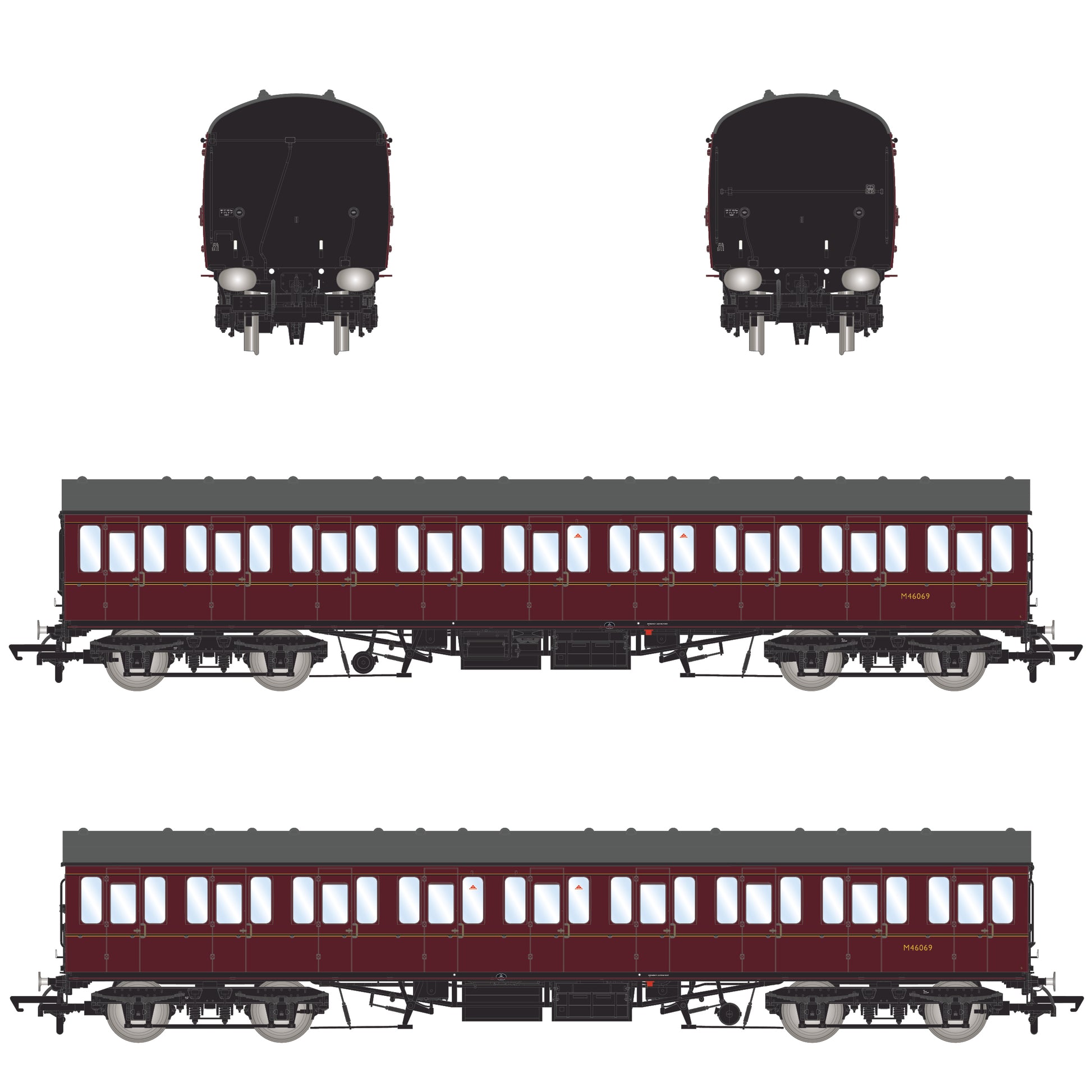 BR Mk1 57' Non-Gangway Coach - S - Lined Maroon (Low position) M46069
